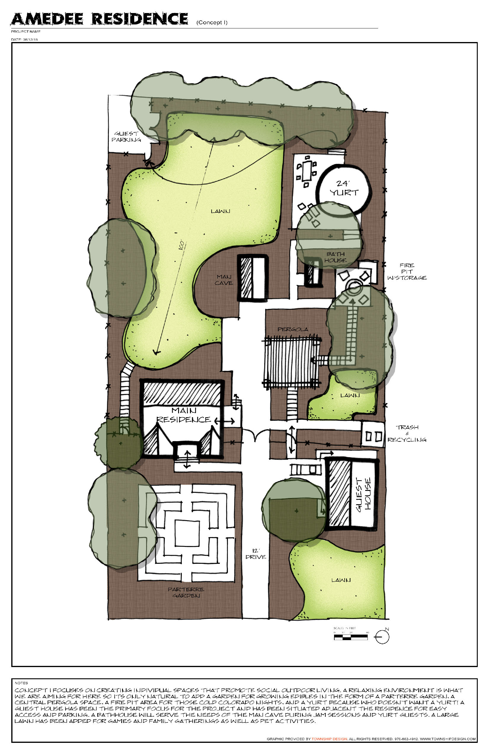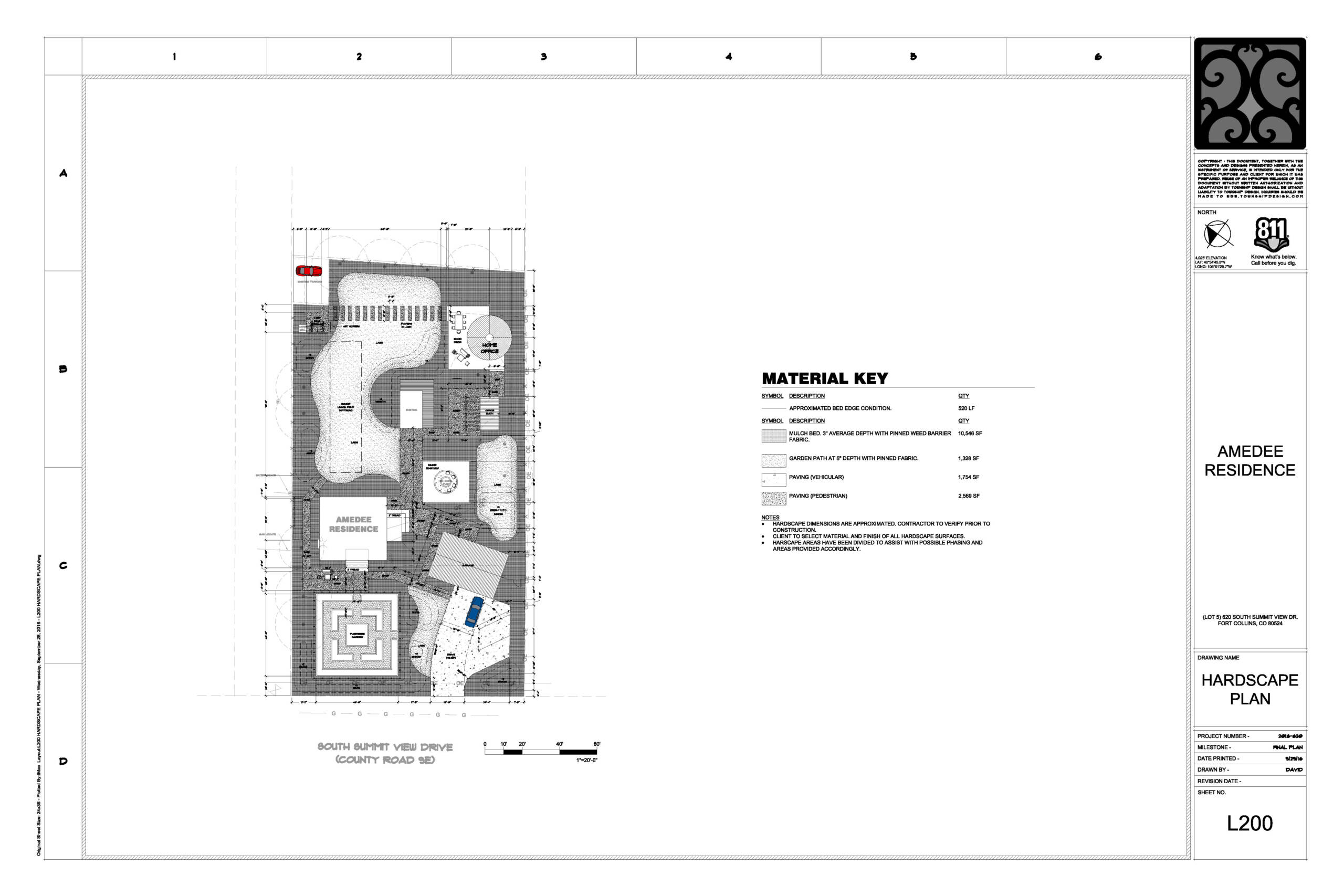 A comprehensive residential landscape master plan developed for a custom home in Fort Collins, Colorado, focused on transforming the property into a multifunctional private retreat. The design approach emphasized organizing the site into distinct outdoor rooms while maintaining strong circulation, visual cohesion, and a comfortable relationship between the residence, guest house, and surrounding landscape.