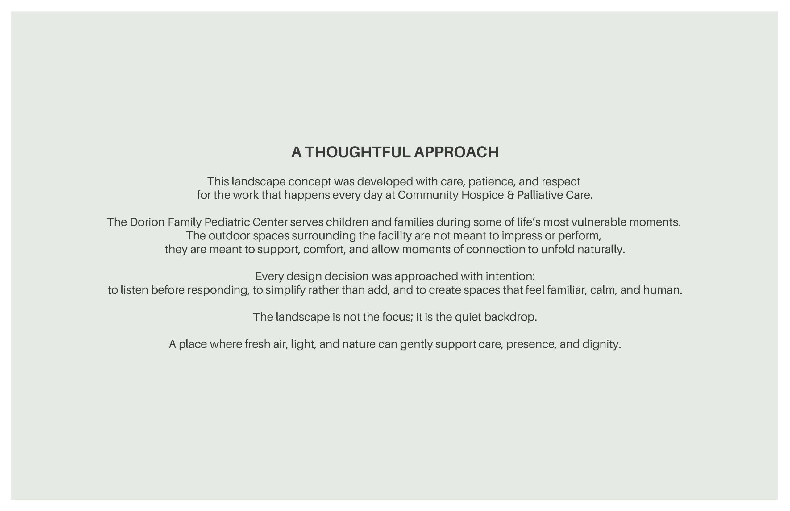 We’re honored to contribute to a place dedicated to care, dignity, and compassion, and grateful for the opportunity to help shape outdoor spaces that support healing in its many forms.