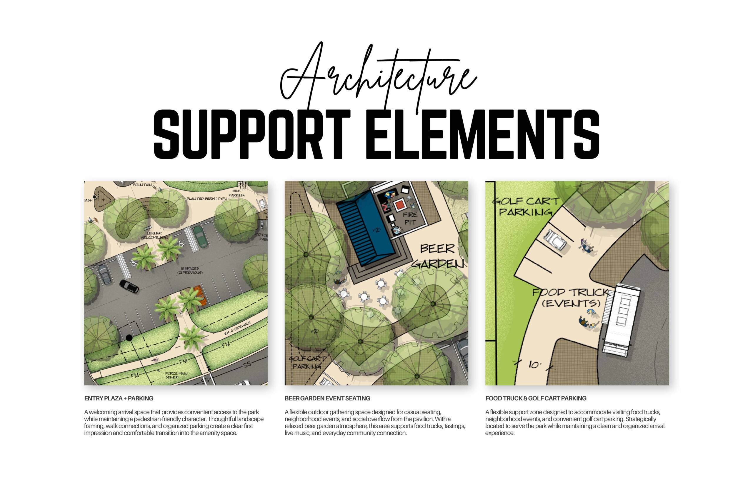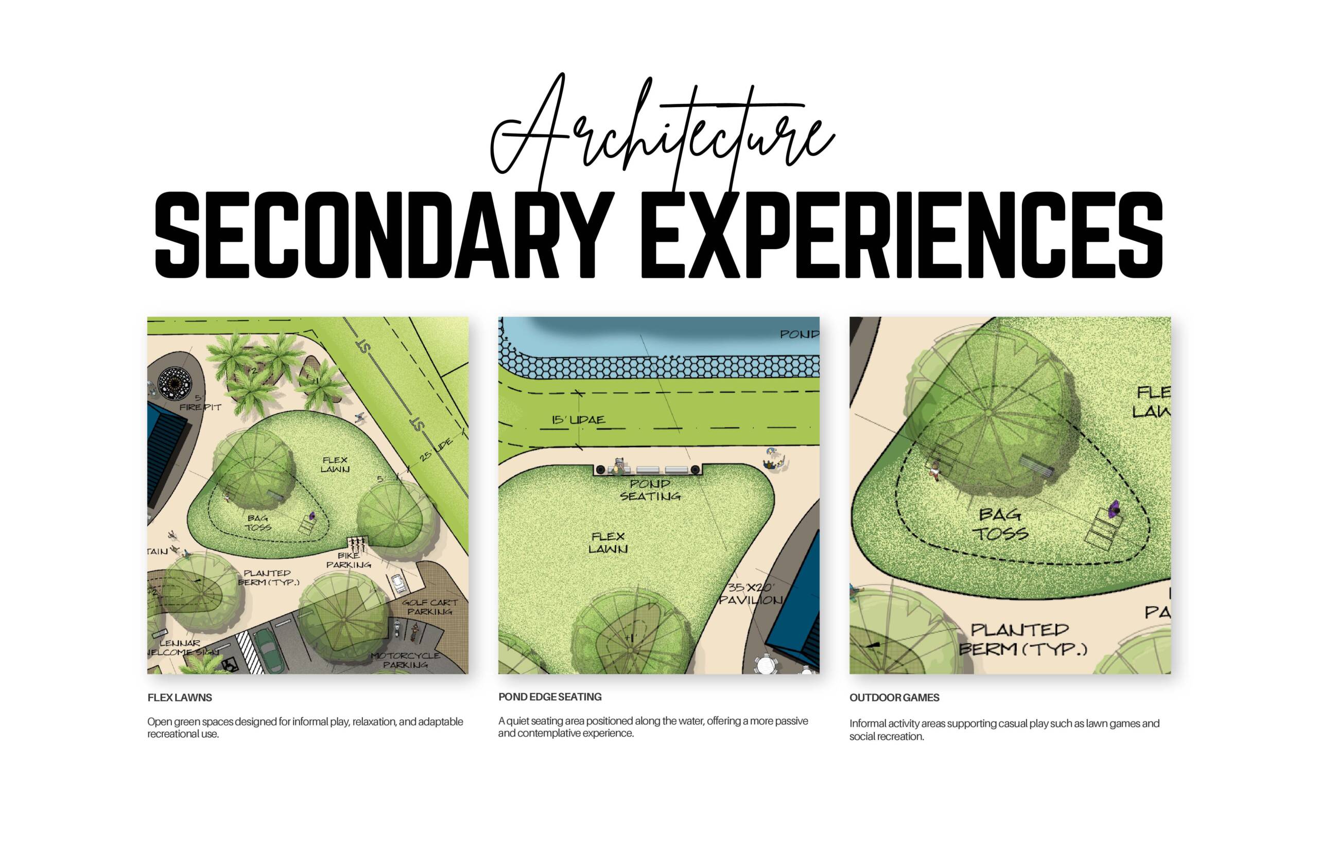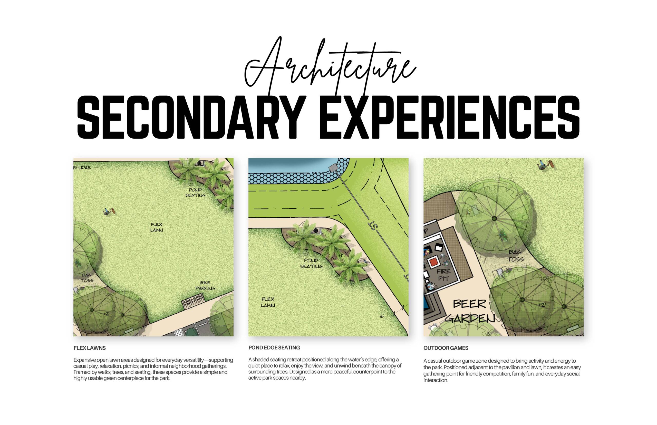 A neighborhood park concept developed as a central gathering space for the Seaton Creek community, designed to balance active recreation with relaxed everyday use. The planning approach focused on creating a welcoming destination that feels connected to the neighborhood while providing flexible spaces for residents of all ages to gather, play, and unwind.